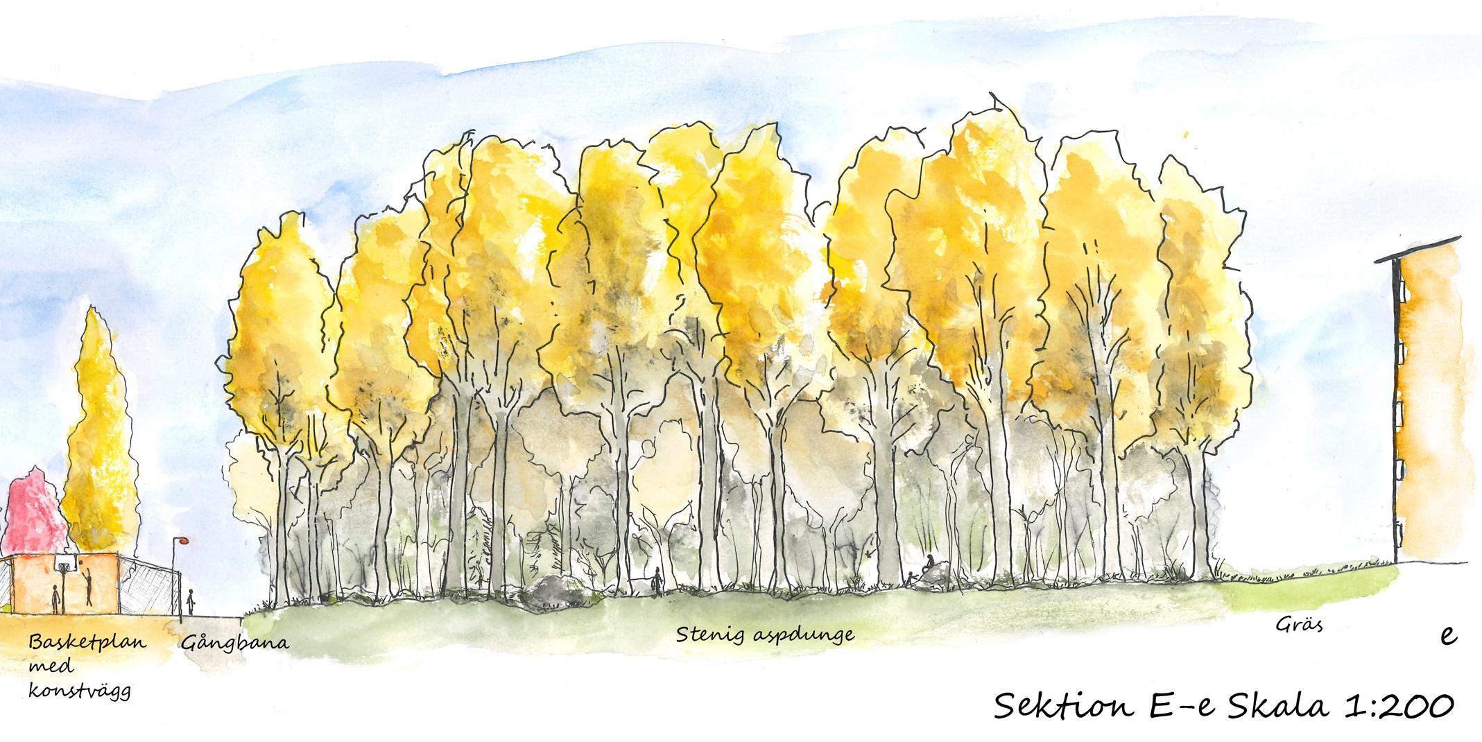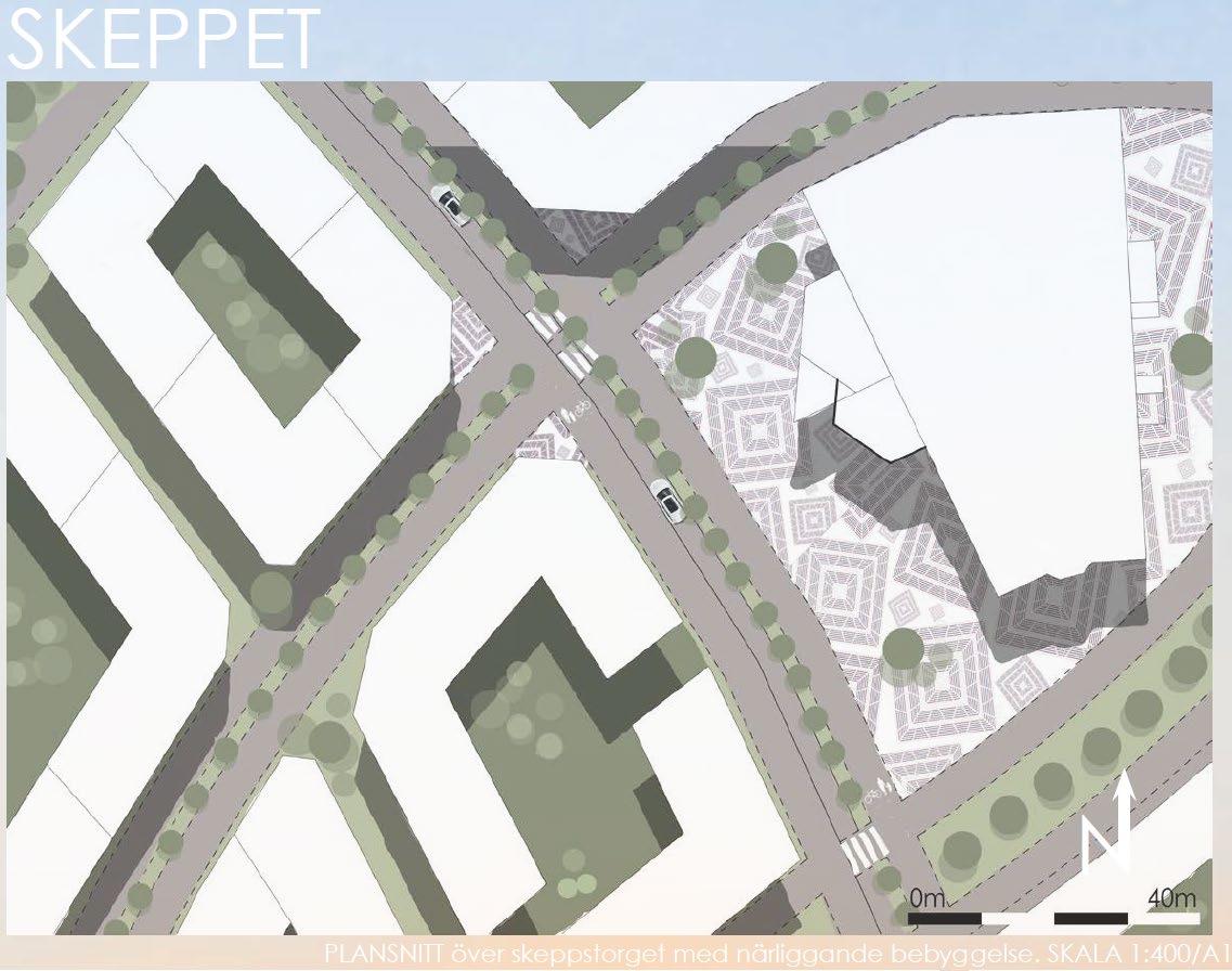 Grupparbete med Lina Axelsson, Ellinor Hult Broman och Tuula Kuusemaa. En stadsdel med fokus på jämlika offentliga rum. Den nya stadsdelen har variation i byggnadstyper och hushöjder. Avskurna hörn och bilfria områden ökar tryggheten. Alla gator har trädrader och stort utrymme ges till gång- och cykeltrafikanter.