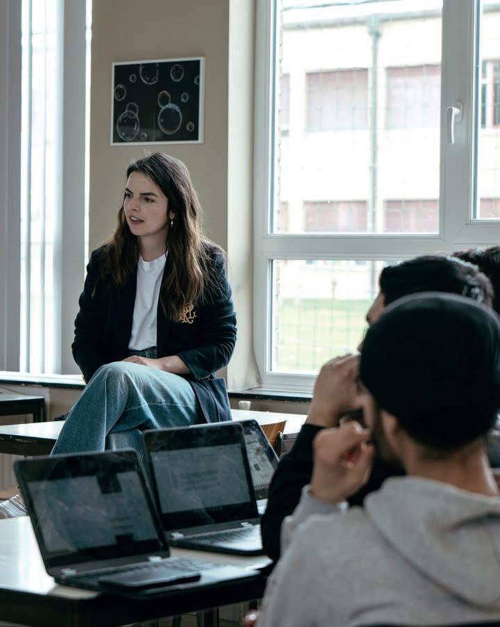 Leraar Jessica (p. 8): “‘Grijp je goed vast’, waarschuw ik mijn leerlingen. Bij het afscheid in juni hou ik het niet droog. Maar wat zo mooi is aan OKAN: onze leerlingen vergeten hun eerste school nooit. En via onze vervolgschoolcoach blijven we op de hoogte van al hun stappen in het secundair.”