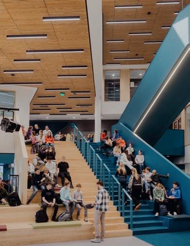 Campusdirecteur Joke (p. 42): “Leren van collega’s start met kansen creëren om elkaar te zien. Daarom bouwen we lokalen met flexibele wanden, groeperen we leraren in kleine teams en maken we een talentenbank. Daarin stoppen we alles: van pure vakkennis tot buitenschoolse bezigheid.”