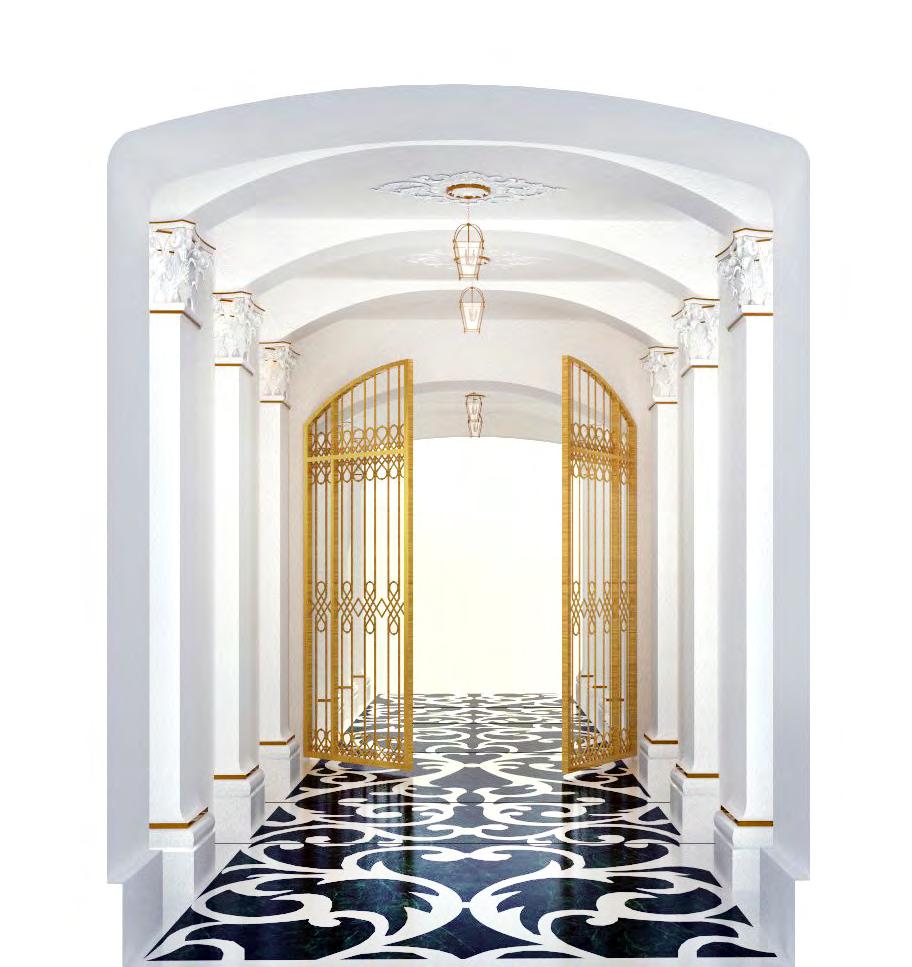 DESIGN OF THE TENEMENT GATE AT 36 PIOTRKOWSKA STREET IN ŁÓDŹ FOR THE TUBĄDZIN COMPANY. THE MAIN CONCEPT OF THE PROJECT IS TO RESTORE THE „SPIRIT OF DETAIL” OF THE TENEMENT HOUSE AND THE GATE, WHICH IN THE PAST WAS DEPRIVED OF NINETEENTH-CENTURY ORNAMENTS. THE MAIN FEATURE OF THE DESIGN IS THE FLOOR DESIGN BASED ON PAST DETAILS.