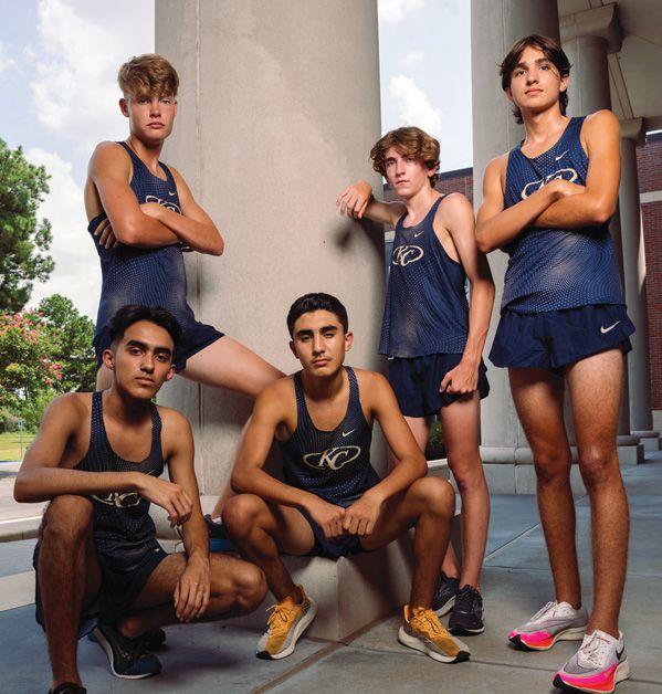 KLEIN FOREST’S CROSS COUNTRY TEAM IS READY FOR THE STARTING GUN. THE EAGLES ARE LED BY THE LIKES OF SOPHOMORE OMAR LIVAS, WHO FINISHED 30TH IN THE DISTRICT MEET A YEAR AGO. GERMAN GARCIA WILL ALSO PLAY A BIGGER ROLE IN 2021. EMMA HINOJOSA AND ALISON DOAN WILL PACE THE GIRLS TEAM.