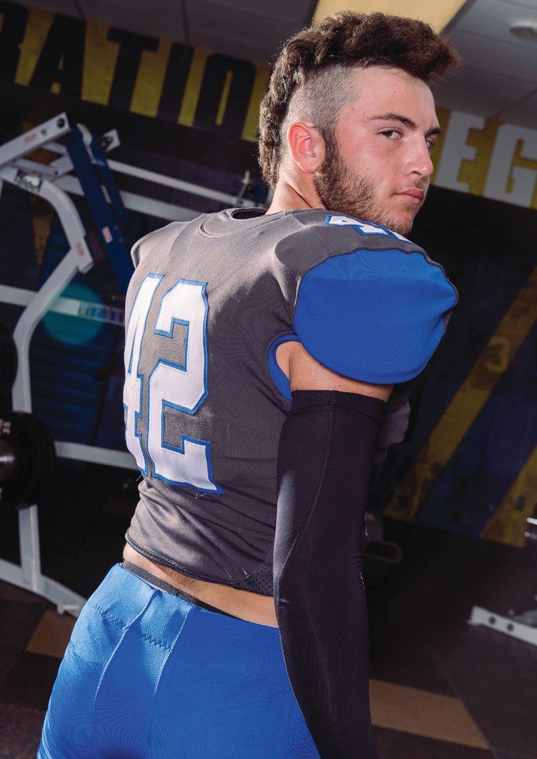 In football, h e ’s a n onons e ns e lin e ba c k e r wh o u ses hi s tra ck s p ee d to r un do wn runnin g ba c ks a n d q uarter b ac k s, w hile d ropp i n g i nt o covera ge on p as s p l ay s.