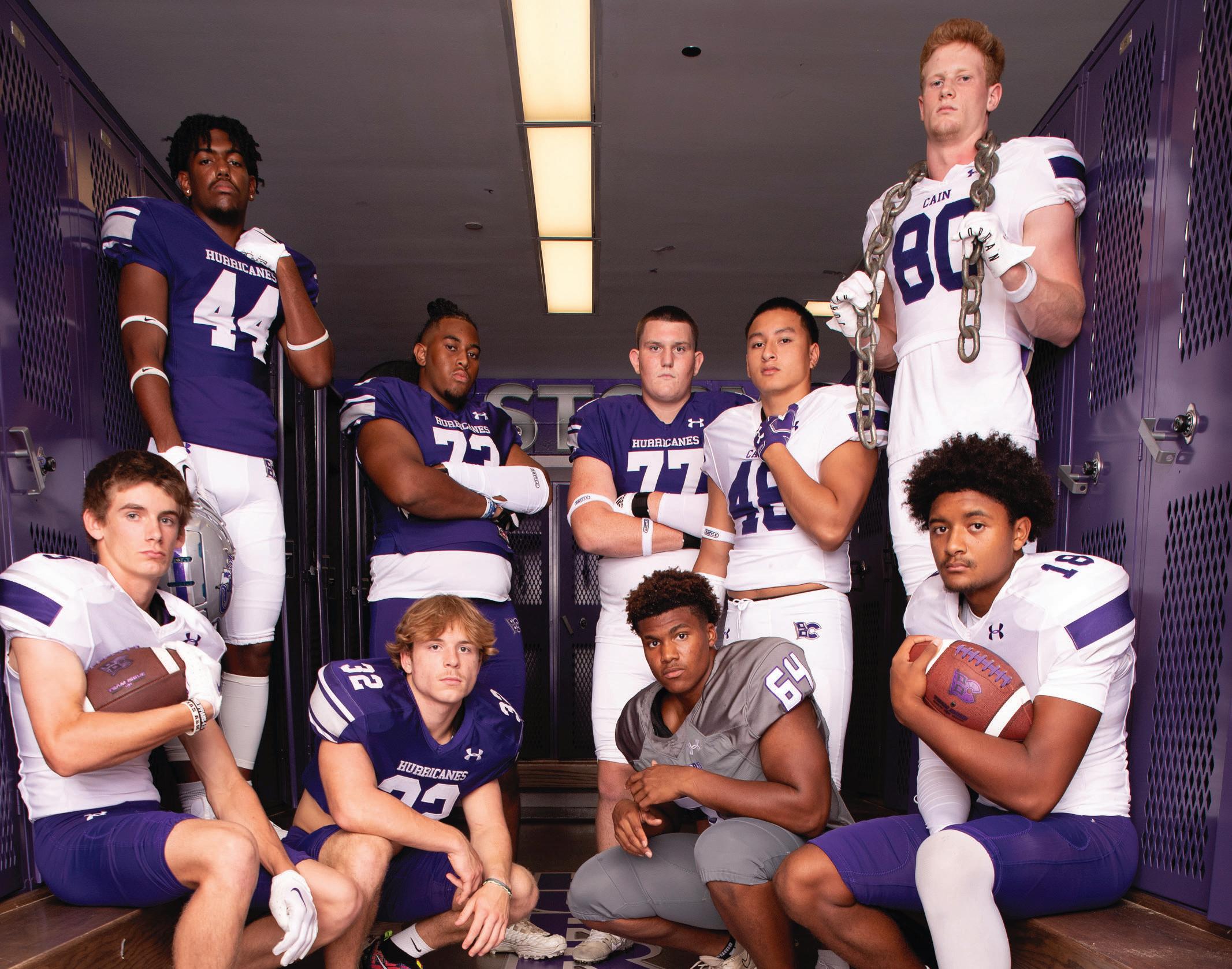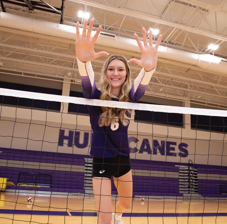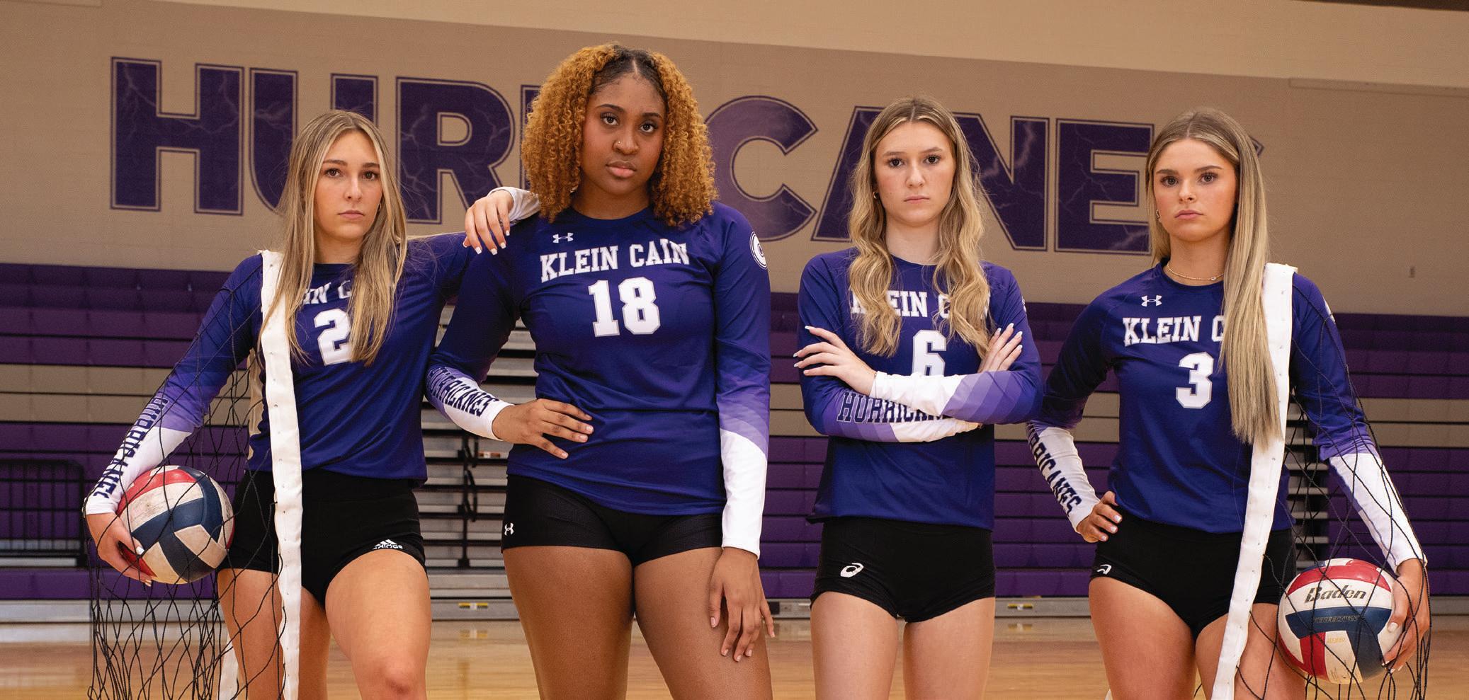 THE KLEIN CAIN FOOTBALL TEAM MADE SCHOOL HISTORY IN 2022, EARNING A CO-DISTRICT 15-6A TITLE. THERE WILL BE NEW FACES FOR COACH JAMES CLANCY’S BUNCH, BUT THE BAR IS SET. THE HURRICANES ARE LED UP FRONT BY ALL-AMERICAN GIBSON PYLE AND JABARI MCALMONT (RICE-COMMIT) ON THE OFFENSIVE LINE. THEY WILL BE PROTECTING NEW QB ISSAC MOORING III. TYLER EDWARDS WILL LEAD THE DEFENSE. CAIN’S VOLLEYBALL TEAM CONTINUES TO BUILD ITS CULTURE UNDER SECOND-YEAR HEAD COACH SARAH BAERENWALD. THE ‘CANES WILL BE ANCHORED BY JAYLYNN MCNEILL, WHO IS COMMITTED TO THE UNIVERSITY OF LOUISIANA. KELLY PAWELKA AND SOPHIE HOFF HAVE TREMENDOUS EXPERIENCE AS SENIORS AND WILL ALSO LEAD THE CHARGE TO A PLAYOFF APPEARANCE. SENIOR FELICITY HAMILTON LOOKS TO IMPROVE ON A SENSATIONAL JUNIOR SEASON ON THE CROSS-COUNTRY PATHS, WHILE THE CAIN TENNIS TEAM ARE THE FAVORITE TO WIN THE DISTRICT. TENNIS REACHED THE AREA ROUND A YEAR AGO.