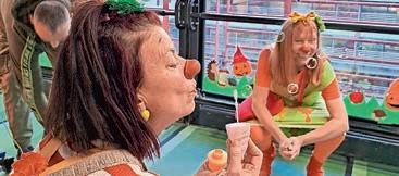 „Esistnichteinfach,seinenClownzufinden“,sagtdiegelernteSchauspielerinBarbara Portsteffen,diezuFranziwird,sobaldsieihre roteNaseaufzieht.„TrotzvielerClownskurse aufderSchauspielschulemussmansuchen, welcheKleidungpasstundwieeigensinnigman alsClownist.Dukannstallessein,manistnie fertig.“IhreKolleginLindaBrouns,einegebürtigeNiederländerin,verweistaufdie„miMakker“-Methode,dieimniederländischenGesundheitswesenbereits2002eingeführtwurde, umunbefangenmitMenscheninKontaktzu treten,fürdieSprachenichtmehrselbstverständlichist:Menschenmiteinerkognitiven BehinderungoderDemenz,dieineinereigenen VersunkenheitoderinderVergangenheitleben, aberauchmigrantischeFamilien.