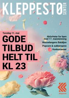 Kundeklubb få eksklusive fordeler 14 ladepunkt til elbiler ved Burger King Ansvarlig utgiver: Kleppestø Senter Gamle Kleppestøvegen 2, 5300 Kleppestø Design og produksjon: Kleppestø Senter Utgivelse: Uke 19 2023 Med forbehold om trykkfeil og utsolgte varer. www.kleppesto-senter.no 440 gratis parkeringsplasser Gratis Wi-Fi Kleppesto_Gjest Følg oss! @KleppestoSenter Møt dem fra kl. 17-19KINE HUD- OG KROPPSPLEIE