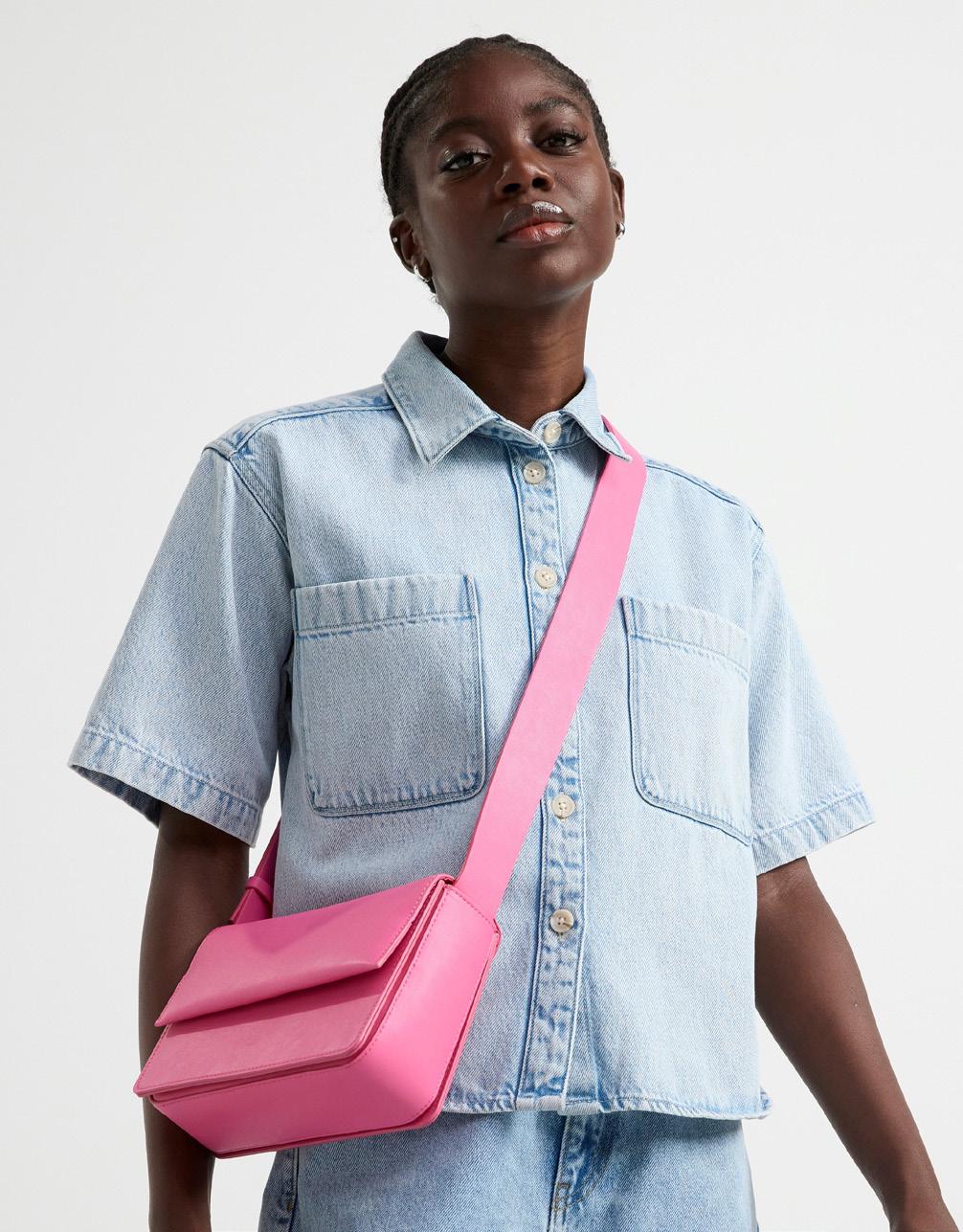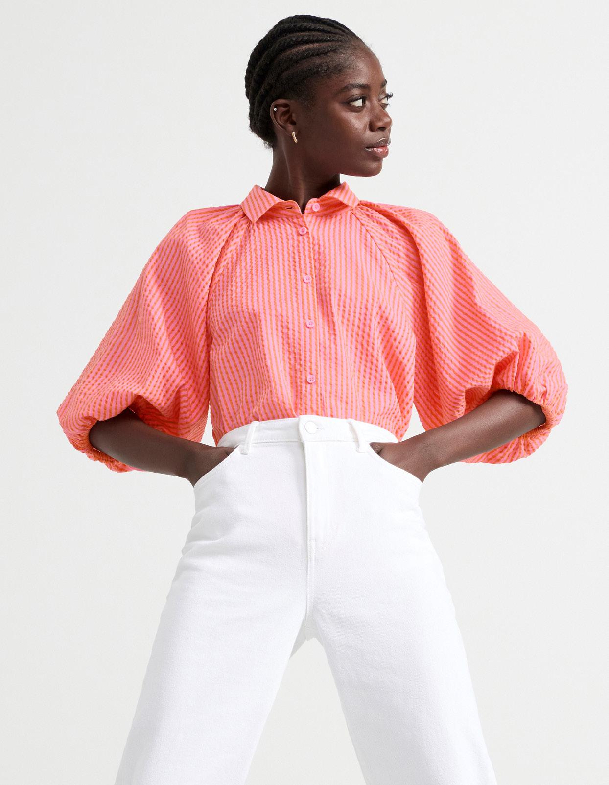 Bluse med puffermer 399,Kortermet denimskjorte 499,-
