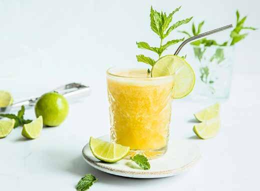 Smak av sommer med mangosorbet, frisk mynte og lime. Nyt som en deilig avkjølende drikk på en varm sommerdag.