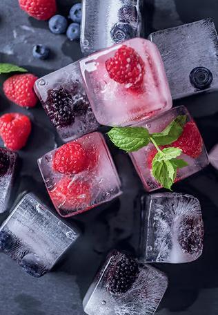 Skap den sommerlige følelsen til drikken din ved å fryse ned frukt og bær i isbitene!
