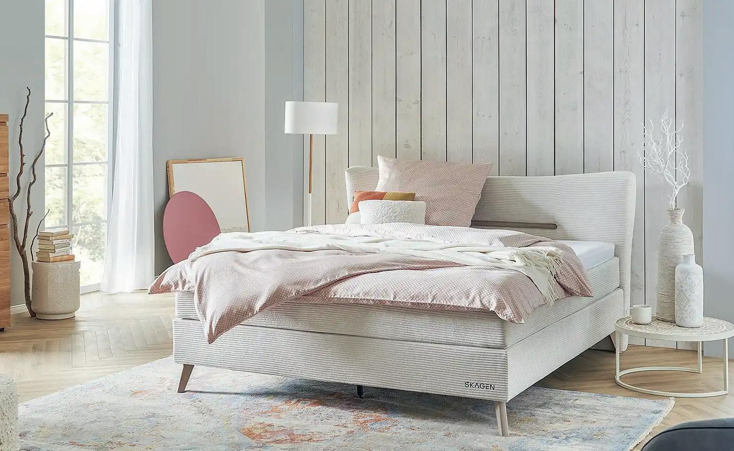 SKAGEN BEDS STRANDRO Kontinentalseng komplett med overmadrass, pocket fjærer med soner, ben og valgfri farge på stoff. 140x200cm Ord. 27.995,- NÅ 13.995,- 150x200cm Ord. 29.995,- NÅ 14.995,- 180x200cm Ord. 35.995,- NÅ 17.995,-
