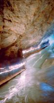 B In Werfen su¨dlich von Salzburg gibt es eine eiskalte Attraktion: die Eisriesenwelt. Das ist die gro¨ßte Eisho¨hle der Welt. Insgesamt ist die Ho¨hle u¨ber 40 Kilometer lang. Die Ho¨hle ist schon vor 100 Millionen Jahren entstanden und immer gro¨ßer geworden.