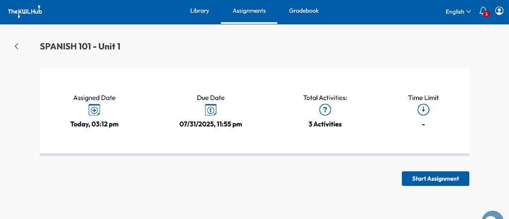 3. Click on The KWL Hub assignment or link