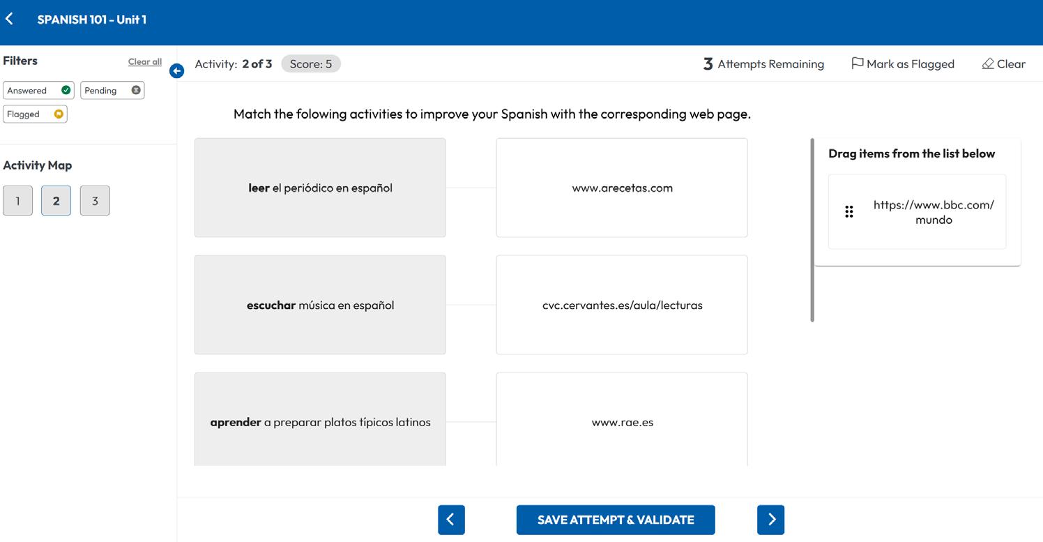 • Use multiple attempts (if your teacher allows it). Click SAVE ATTEMPT & VALIDATE after each attempt to check your answers and record your progress.