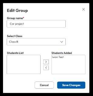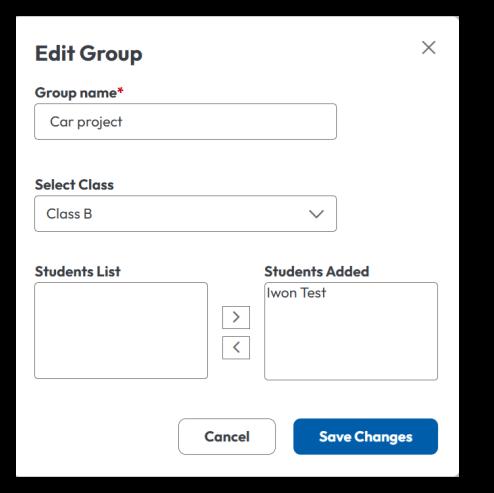 Editing a group works in a similar way. When you click “Edit Group,” you can change the group name or modify the list of students in it.