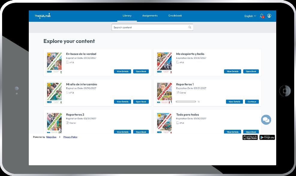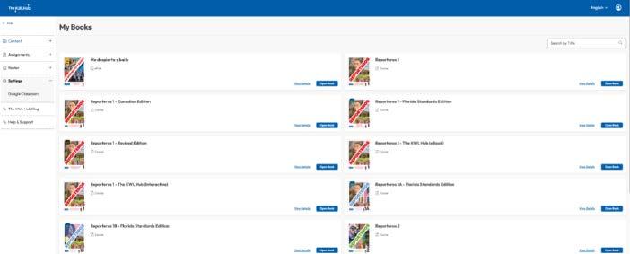 The Library is the landing page of The KWL Hub. Here you will find all the eBooks and courses you have registered on the platform, along with a side menu—available in every view—that lets you access the rest of the platform’s features. The Library is a central part of The KWL Hub, and its design has been updated to provide a more modern and intuitive experience.