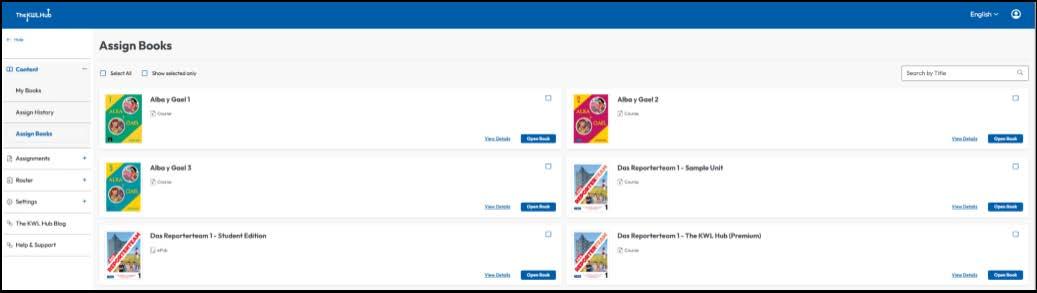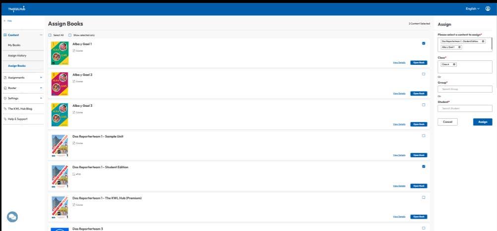 From the sidebar menu, open the “Content” tab and select “Assign Books”.