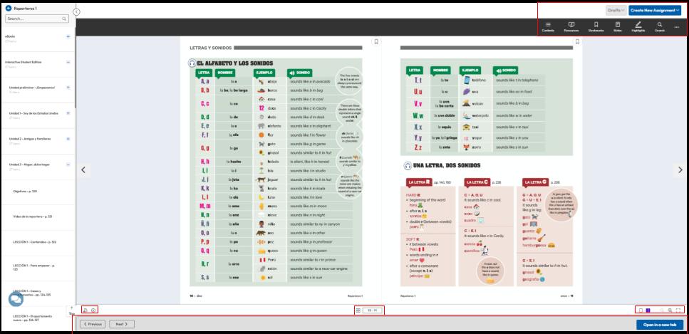 Contents: Displays a menu of the book’s content and allows quick navigation between sections.