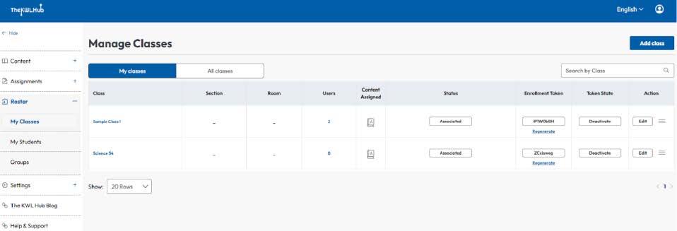 To view and manage the classes you are currently associated with, navigate to “Roster” and click on “My classes.”