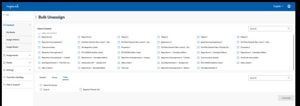 Another feature of this page is the “Bulk Unassign” button. This option allows you to remove multiple assignments at once, without needing to select them from each individual book.
