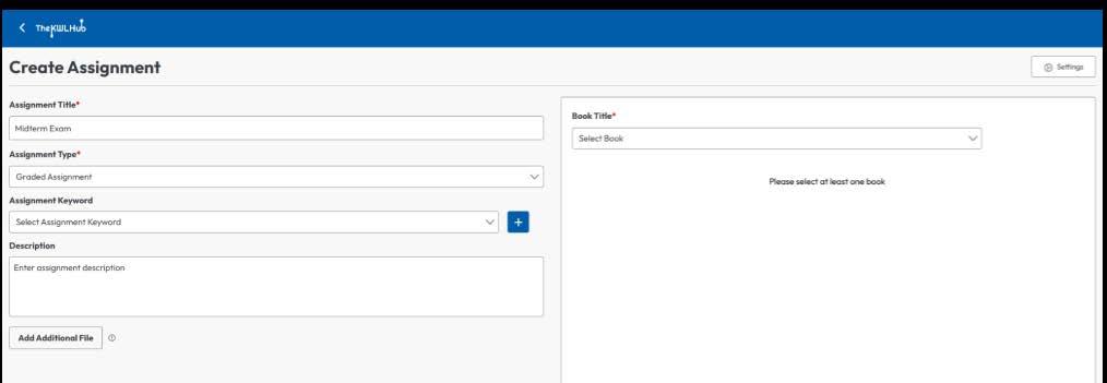 • Settings: Allows you to adjust specific settings for the assignment, as shown below: