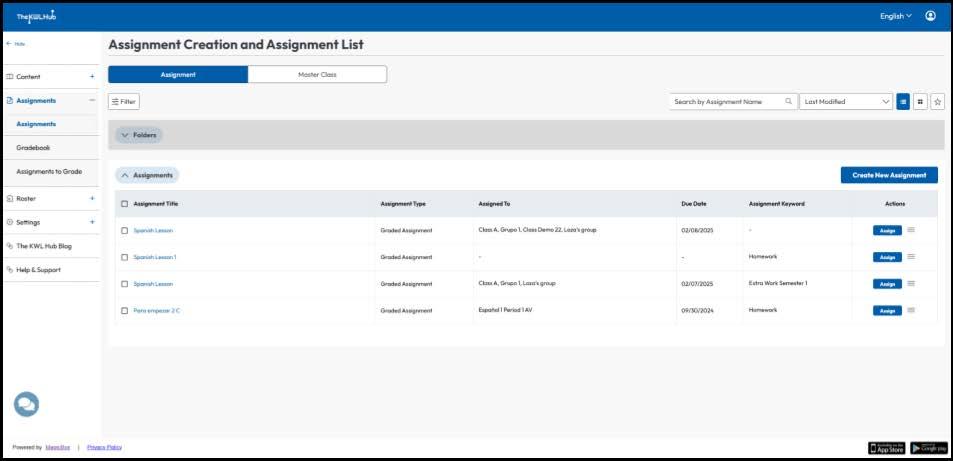 We’ve added the option to create and manage groups of assignments using folders. This option is available through the “Create Assignment” menu in the left sidebar.