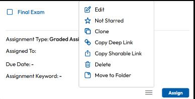 In addition to assigning, the hamburger menu includes other useful options, such as editing the assignment, starring it, or sharing it.