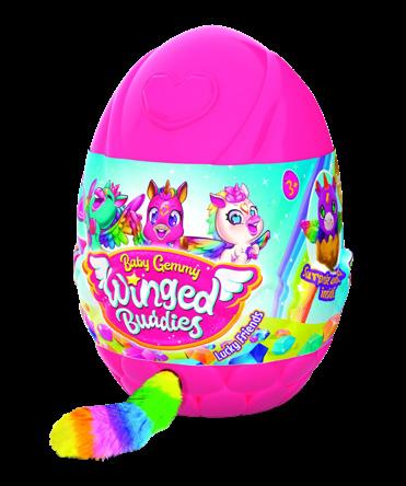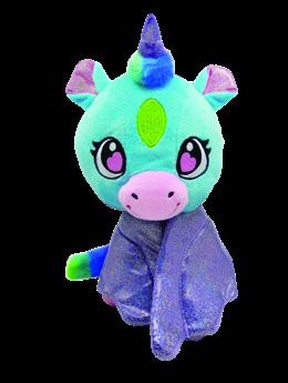 Plišasti samorog in čarobni biserček za srečo, ki sveti v kristalnem jajčku. Potrebuje 3 LR41 gumbne baterije. Starost: 3+ let.