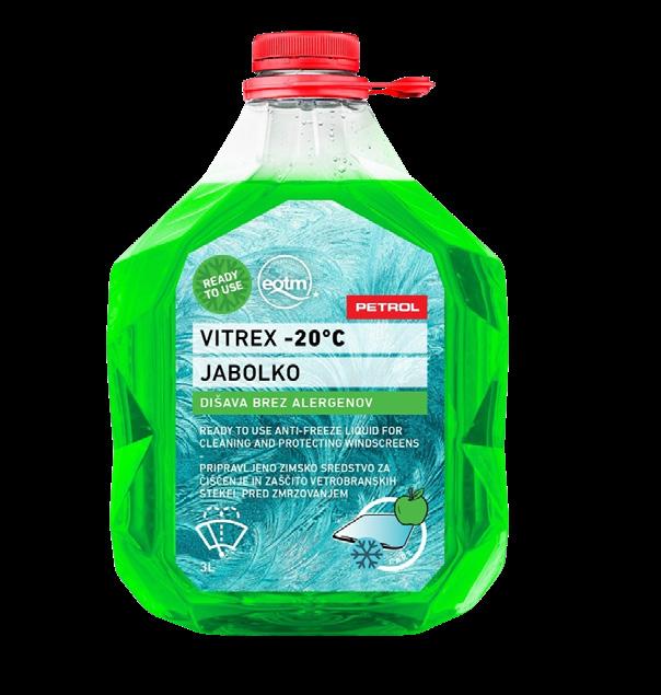 Pripravljeno zimsko sredstvo za čiščenje in zaščito vetrobranskih stekel pred zamrzovanjem. Vsebuje dišavo brez alergenov.