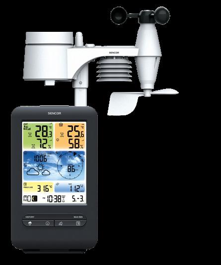 Merjenje zunanjih in notranjih temperatur, vlage, zračnega tlaka, vetra ter padavin. Zgodovina meritev. Povezava z »Weather Underground« in »Weathercloud«. Barvni LCD zaslon z diagonalo 5,4'' (13,8 cm). Garancija: 2 leti.
