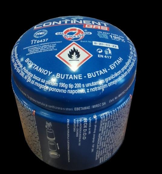 REDOVNA CIJENA: 2,52 € | 18,99 kn Plinska kartuša napunjena sa 190 grama mješavine butan/propan idealna je za primjenu na nižim temperaturama. Kartuša ima novi sigurnosni sistem Gas Lock System, koji jamči da neće doći do istjecanja plina. Šifra 166193