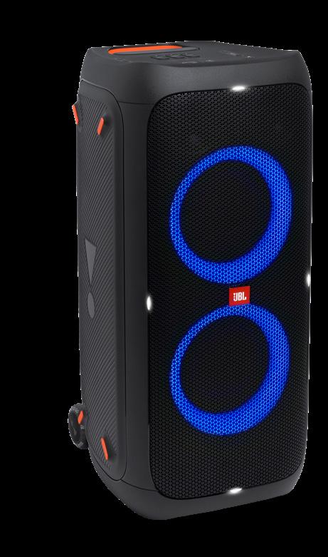 JBL Pro zvok, bleščeče luči in neverjetna moč. Prenosni zvočni stroj, odporen proti vodi. 240 vatov zvoka in sinhronizirana svetlobna oddaja, ki utripa v ritmu. 18-urna življenjska doba baterije.