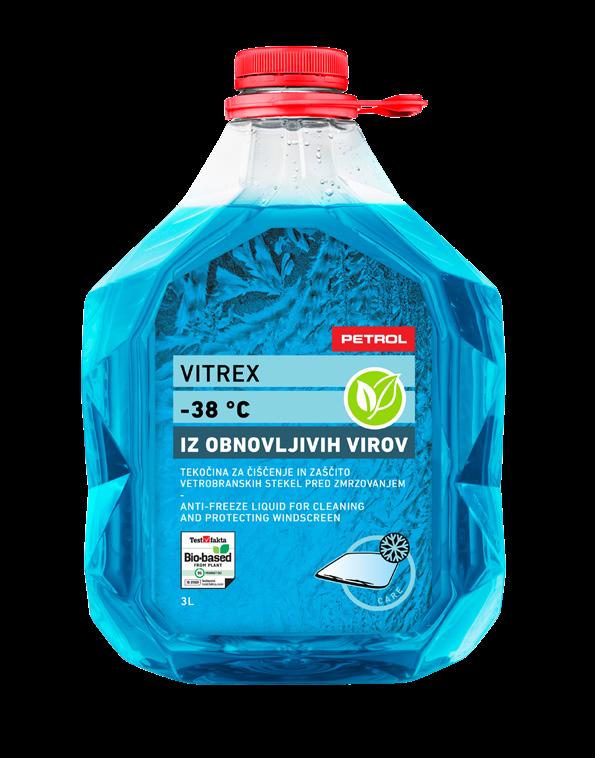 Za čiščenje vetrobranskega stekla pri temperaturah do -40 °C. Vsebuje glicerin, ki vzdržuje gumo voljno in med delovanjem preprečuje škripanje brisalcev po steklu. Vonj limone.