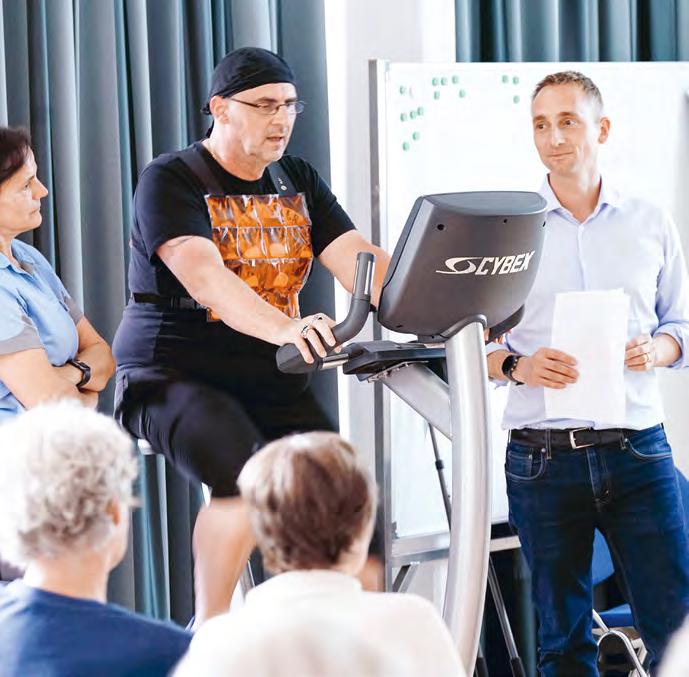 Bei einer fortgeschrittenen Sarkopenie empfiehlt sich der Aufenthalt in einer Rehabilitationsklinik, sodass die Muskulatur gezielt aufgebaut werden kann. «Aber auch danach muss man am Ball bleiben», betont der Experte. Dafür braucht man kein Jahresabo für das Fitnesscenter, sondern kann zu Hause trainieren – mit Thera-Bändern, Wasserflaschen und anderen Hilfsmitteln aus dem Alltag. Unsere Therapeutinnen und Therapeuten geben hierzu gerne Tipps.