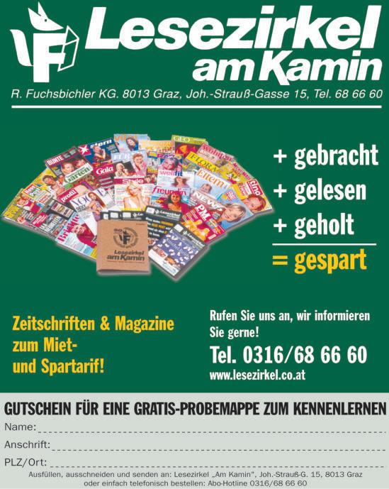 KLIPP Zeitschriften GmbH Nfg & Co KG, 8041 Graz, Liebenauer Hauptstraße 2-6, Tel. 0316/ 42 60 80-0, Fax-Dw 122