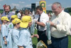 Wichtig war denVeranstaltern,dem Steirischen Zivilschutzverband und der Allgemeinen Unfallversicherungsanstalt (AUVA) der Landesstelle Graz mit Unterstützung des österreichischen Bundesheeres, dass die spielerische Komponente, mit der Kindern im Bereich der Unfallverhütung,Selbstschutz und Zivilschutz das richtige Verhalten in Notsituationen bewusst gemacht wurde,nicht zu kurz kam. Weil getreu dem olympischen Gedanken das Mitmachen am wichtigsten war, bekamen alle kleinen Teilnehmer Urkunden und Pokale mit nach Hause. Den ersten Platz im Landesfinale konnte sich die VS Bärnbach II mit 375 Punkten sichern. ■