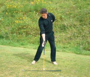 Der Schwung bei langen Eisen ist derselbe wie bei mittleren Eisen. Weil man im Kopf will, dass der Ball weiter fliegen soll, wird der Griff zu fest,die Muskel verkrampfen sich und manbekommtbeimSchlagdann keine Länge. Ein kleiner Trick,