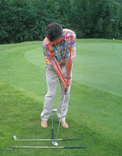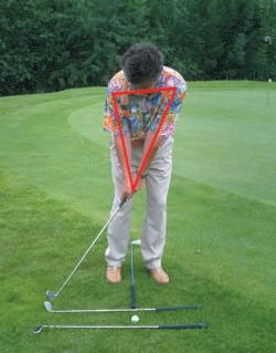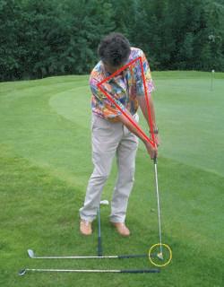 Schläger kürzer greifen, Schlägerblatt 90 Grad zum Ziel, Körperachsen parallel zur Ziellinie, linkes Auge vor dem Ball.