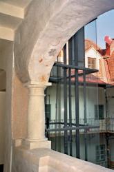 makler GmbH vergeben werden. Mieter des ersten und zweiten Geschoßes ist die Steuerund Unternehmensberatung Corti & Partner GmbH. Die hellen Geschäfts- bzw. Büroräume im Erdgeschoß mit Galerie bieten der Manpower GmbH einen großzügigen Dienstleistungsbereich mit durchgehender Glasfassade.