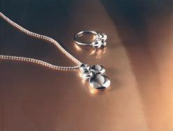 Der Glanz der Seide und schlichte Linien verschmelzen zu außergewöhnlichemSchmuck.Wieflüssiges Silber, weich und sanft, umschließt die neue ck jewellery