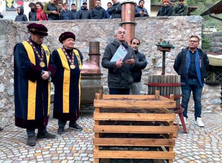 leitet seinen Namen wahrscheinlich vom Geschmack gerösteter Haselnüsse her, der da ein wenig mitschwingt, kommt nur noch im Trentino vor, und fühlt sich auf diesen steinigen Moränenböden offensichtlich besonders wohl. Übrigens muss sich die Nosiola-Traube (wie auch die Segler auf dem Gardasee für die verlässliche Brise) bei dem ständigen Wind bedanken, der ihre Anfälligkeit für Mehltau wegbläst. Und uns den Vino Santo schenkt, einen Süßwein ohne Klebrigkeit aus dem Valle dei Laghi. Dafür sammelt man von September bis in den Oktober hinein die schönsten Reben, die man auf Holzrosten im Wechsel von Pelér (Vormittags-Wind vom See her) und Ora (bläst umgekehrt und verlässlich am Nachmittag von den Bergen) trocknen lässt. Am Samstag vor der Karwoche wird dann das Keltern begonnen, selbstverständlich mit einem feierlichen Ritual in Santa Massenza – im Trentino ist jeder Anlass zum Feiern willkommen. Die Pressung muss dann auch noch sechs bis sieben Jahre in Eichenfässern ausgebaut werden, bevor sie, in Flaschen abgefüllt, nochmals ebenso lange lagert: Ein kostbarer Tropfen. Die