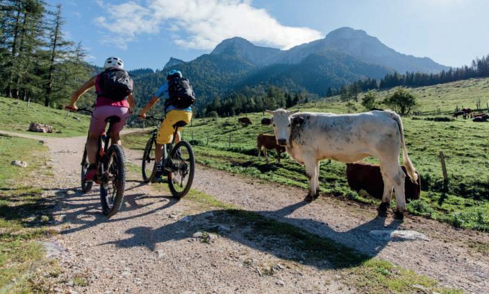 daran arbeiten wir“, begründet Albert Ebner in der Gemeinde Hintersee am Hintersee (es gibt auch ein Vordersee), Chef des gleichnamigen Hotels „DAS Hintersee“, die gemeinsame Einladung mit dem Salzburgerland Tourismus zu einem mehrtägigen Aufenthalt für EMountainbike-Fans und -Einsteiger. „Neben dem Wandern wollen in den letzten Jahren auch immer mehr Gäste auf dem E-Bike die Region kennenlernen. Wir haben im Haus im Sommer einen eigenen Verleih mit Shop, im Winter sind es die Ski“, so Ebner. Und das