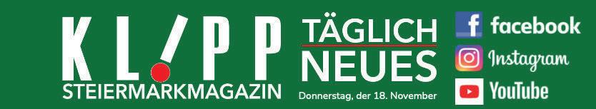 Medieninhaber und Herausgeber: KLIPP Zeitschriften GmbH & Co KG Mohsgasse 10, 8020 Graz Redaktion und Post-Adresse Weidenweg 8, 8502 Lannach office@klippmagazin.at