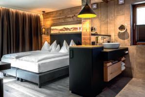 einem guten Abendessen über den gelungenen Tag. Und bei mehreren Glaserln Wein oder einigen Schnapserln schwärmte Albert Ebner von seinen neuen Chalets und „Zuahäusern“. Ausgestattet mit viel Eichenholz, Leinenstoffen versprechen sie ein Wohlfühlambiente, auch an einen eigenen gefüllten Wein-Kühlschrank wurde gedacht. Für E-Autos und E-Bikes gibt es in der Tiefgarage des Hotels – „zeitgemäß“ (Ebner) – natürlich Ladestationen.