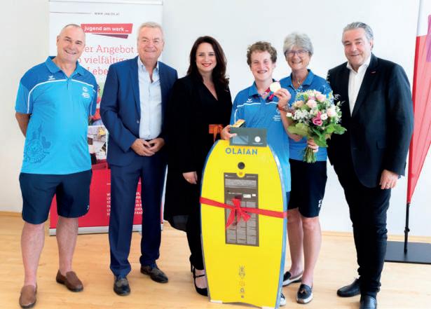 Vater Johannes Bittmann, LH-Stv. Anton Lang, JAW-Steiermark-GF Sandra Schimmler, Olympiasieger Florian, seine Mutter Eva und JAW-Steiermark-GF Walerich Berger (v.l.)