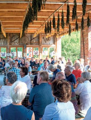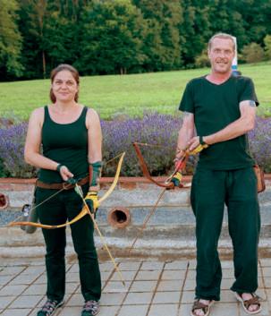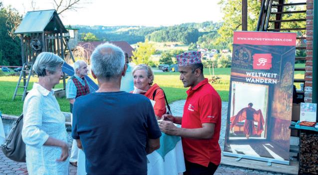 Sudama Karki aus Kathmandu 5 Von der Torte bis zum Schnaps (von Florian Taucher) gab es alles für die Gäste zu verkosten 6 beide im Brennnessel-Look: Isabella Wuthe (Tochter), Moderatorin Isabella Hasewend 7 Ehrengäste am großen Tisch im HimalayaRestaurant 8 Brennnessel-Stadl in Eggersdorf 9 Bogenschützen in Aktion 10 Weltweitwandern-Partner Sudama Karki mit Gästen 11 Diskutieren über Bogenschießen: Gerald Brettschuh, Heinz Binder 12 Hielt Laudatio für den Gastgeber: Eggersdorfer Vize-Bgm. Johann Zaunschirm 13 Spielte auf mit seiner Quetschn: Tobias Ruprechter
