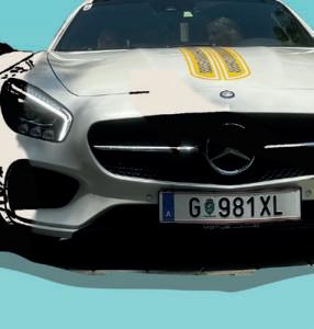 Sein weifler Mercedes AMG GT1 hat auch schon Kult-Status. Und der Dritte im Bunde ist ein Jaguar F Type. Bereits angeschafft, aber noch nicht geliefert, f¸r seine Firma