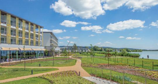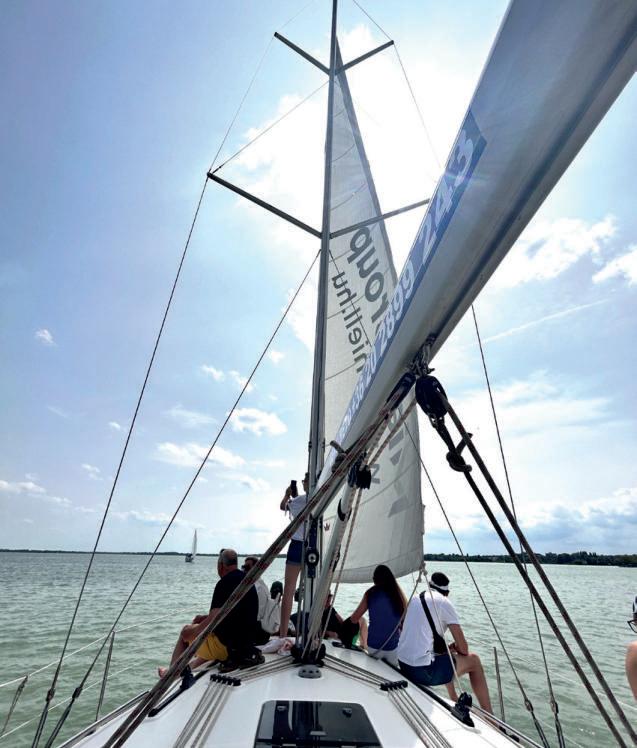 Der Blick am Morgen vom ÑLakeSide-Zimmerì auf den See ñ Wow! Das hat was! Gut mitgedacht haben auch die Planer, denn Gelsen und Co. haben im Hochsommer keine Chance ñ durch die extra angebrachten Insektenschutzgitter. Nach dem Fr¸hst¸ck gehtës zum Fahrrad-Verleih, dem Start zu unserer Biketour. Wer es ganz sportlich anlegen will: Die rund 210 Kilometer lange Tour rund um den Balaton – alles flach – ist in zwei Tagen zu schaffen. Unser Stopp war das eindrucksvolle Schloss Festetics. Zum Chillen ging es am sp‰ten Nachmittag mit dem Segler hinaus auf die offene See. Mit dabei an Bord nat¸rlich auch die entsprechend gek¸hlten Getr‰nke. Unsere Gruppe ist rasch lernf‰hig: EgÈszsÈgedre! Zu deutsch einfach: Prost!