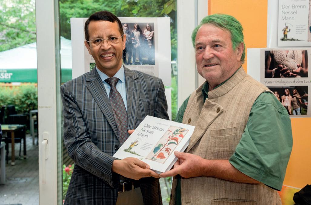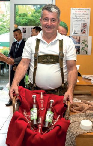 Schon ein ganz spezieller Anlass, um nicht zu sagen schräg, warum Franz Wuthe, 77, ins nepalesische Restaurant Himalaya Masala in Graz kürzlich geladen hatte. Er feierte dort einen ganz besonderen Moment, für den sogar eine kleine, nepalesische Delegation – angeführt vom Nepalesischen Botschafter für die Vereinten Nationen in Wien – und zwei erfahrene Himalaya-Kenner extra aus Kathmandu nach Graz gekommen waren. Botschafter Bharat Kumar Regmi war erstaunt und sichtlich stolz auf sein Land, als er erfuhr, dass Franz Wuthe unter den zigtausenden Besuchern Nepals der einzige war und ist, der nachweislich nur wegen seiner „Brennnessel-Mission“ in seinem Land war. KLIPP-Herausgeber Jürgen Lehner hat Franz Wuthes Passion in seinem Buch „Der BrennNesselMann“ niedergeschrieben und nacherzählt, das dieser im Himalaya Masala Restaurant präsentierte.