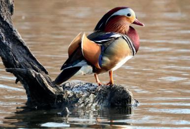 Bild li.: Ein Mandarin-M‰nnchen, die farbigste Ente, die es ¸berhaupt gibt, stammt aus Asien. Oben: Eisvogel