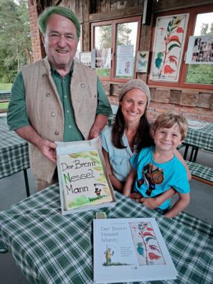 Drei Generationen Wuthe: Opa, Tochter und Enkel Adrian. Der vierte Wuthe: Bruder Harald (li. unten) servierte den Gästen Köstliches aus Harrys Brennnessel-Küche.