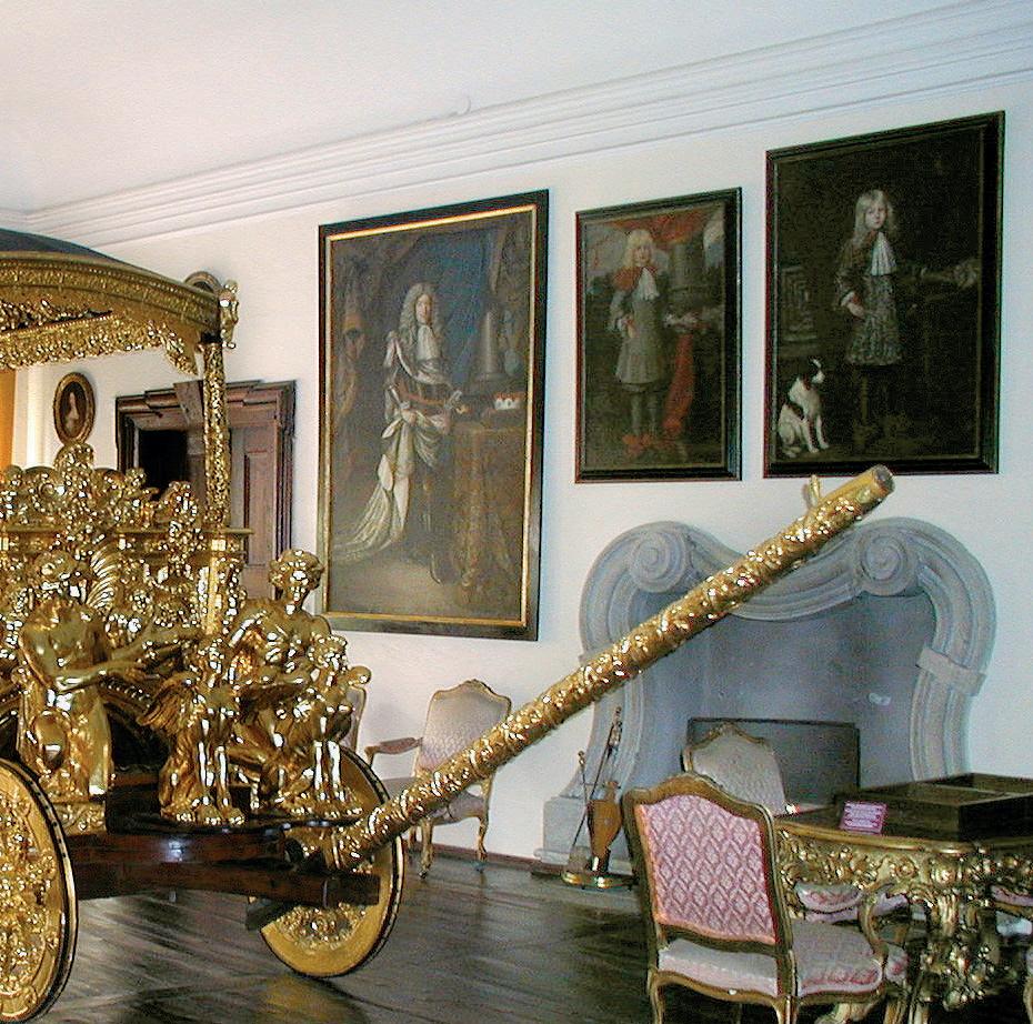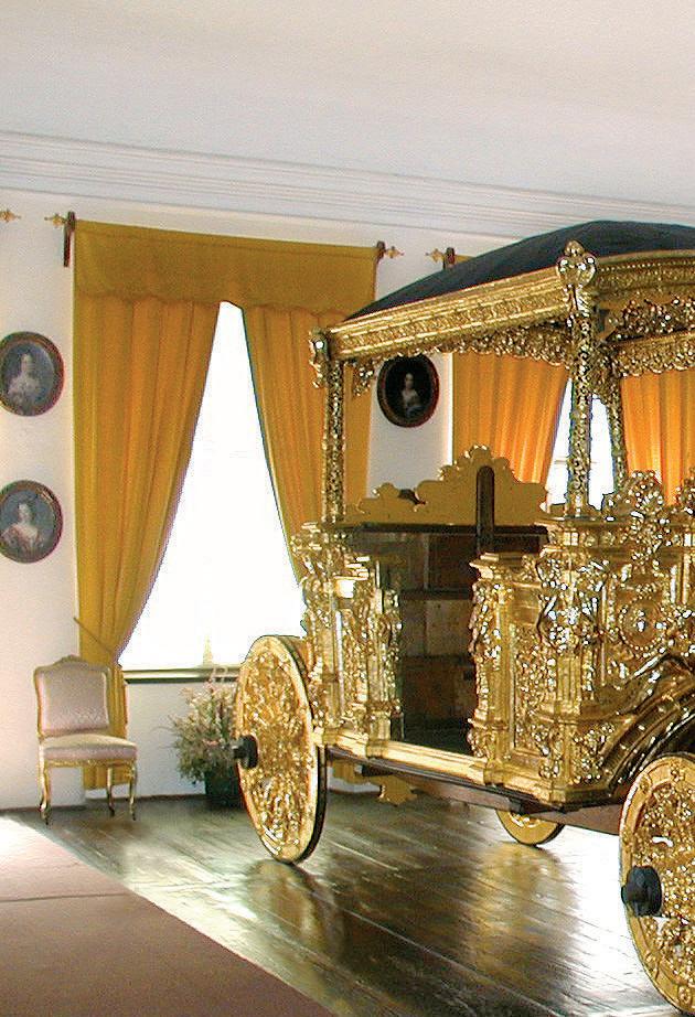 Sie steht leider nicht dort, wo sie von ihrem Namen her der Besuchermagnet schlechthin w‰re. Jene Goldene Kutsche, die der Eggenberger F¸rst Anton I. von Eggenberg (1610ñ1649) f¸r einen Besuch als kaiserlicher Gesandter beim Papst in Rom bauen liefl ñ ein vergoldetes Prunkst¸ck aus Nussbaumholz. Den Transport der Kutsche ñ damals ein ganz schwieriges Unterfangen ñ konnte er nicht mehr veranlassen. F¸rst Anton I. starb bereits mit 39 Jahren und blieb noch dazu kinderlos. Erst Jahrzehnte sp‰ter lieflen die Nachfahren seiner Frau die Goldene Kutsche an ihren Familiensitz aus Rom zur¸ckholen. Dieser war Krumau und nicht Eggenberg. Und das kam so: Krumau hatte starke historische Wurzeln in die Steiermark, denn dort regierten die Adelsfamilien der Eggenberger.